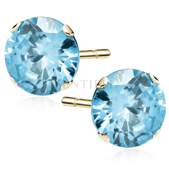 Srebrne pozłacane kolczyki pr.925 akwamarynowa cyrkonia okrągła średnica 10mm