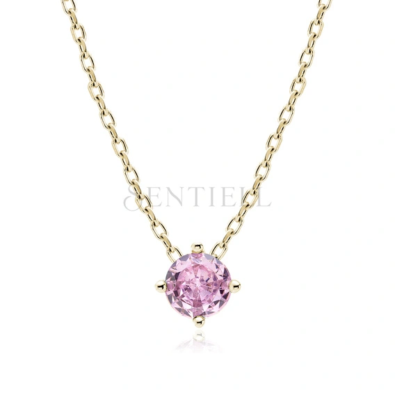 Srebrny pozłacany naszyjnik pr.925 z różową cyrkonią
