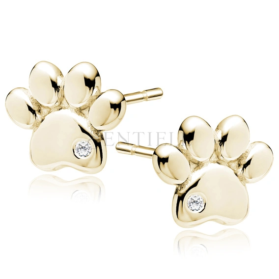 Srebrne pr. 925 pozłacane kolczyki - łapka pies / kot z białą cyrkonią
