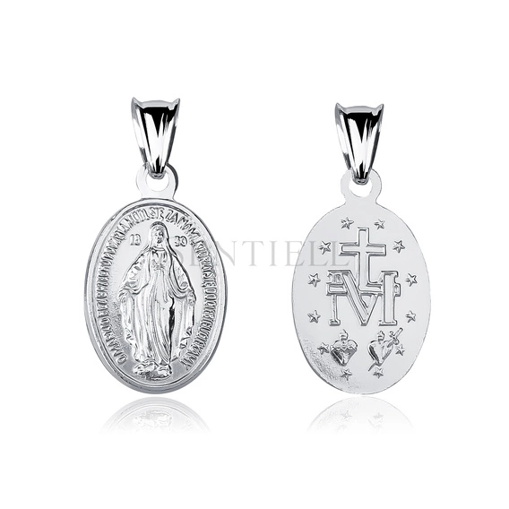 Srebrny pr. 925 medalik Matka Boska Cudowna dwustronny 25 x 10 mm