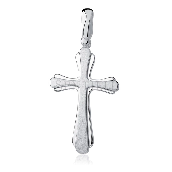 Srebrny pr. 925 krzyżyk satynowany z polerowanym konturem 37 x 17 mm