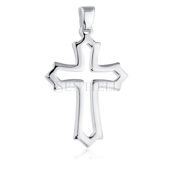 Srebrny pr. 925 krzyżyk ażurowy o profilu geometrycznym 38 x 22 mm