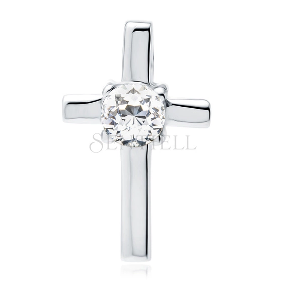 Opinie o Srebrny pr. 925 krzyżyk z centralną oprawą cyrkonii 17 x 10 mm