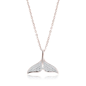 Srebrny pozłacany naszyjnik pr.925 płetwa wieloryba z cyrkoniami - różowe złoto