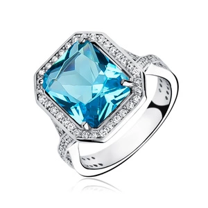Srebrny modny pierścionek pr.925 Cyrkonia aquamarynowa