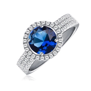 Piękny srebrny pierścionek pr.925 Cyrkonia szafirowa