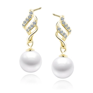 Srebrne pozłacane kolczyki pr. 925 perły z białą cyrkonią