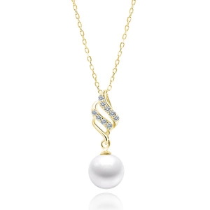 Srebrny pozłacany naszyjnik pr.925 z perłą i białą cyrkonią