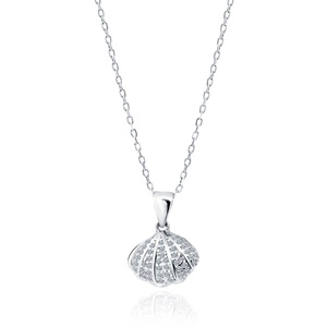 Srebrny naszyjnik pr.925 muszla z perłą i cyrkoniami