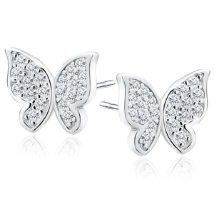 Srebrne kolczyki pr.925 motylki z sercem pozłacanym różowym złotem i białymi cyrkoniami