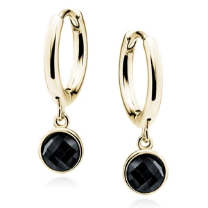 Srebrne pr.925 pozłacane okrągłe kolczyki z czarną cyrkonią