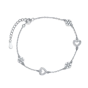 Srebrna bransoletka pr.925, kwiatki i serca z białymi cyrkoniami