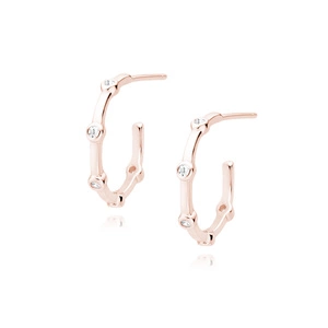 Srebrne pr.925 pozłacane okrągłe kolczyki z cyrkoniami - różowe złoto