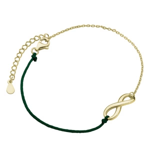 Srebrna pr.925 pozłacana bransoletka z ciemnozielonym sznurkiem - pozłacana nieskończoność