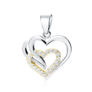 Srebrna zawieszka pr. 925 pozłacane potrójne serce z białymi cyrkoniami