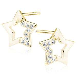 Srebrne pozłacane kolczyki pr. 925 gwiazdki z białymi cyrkoniami