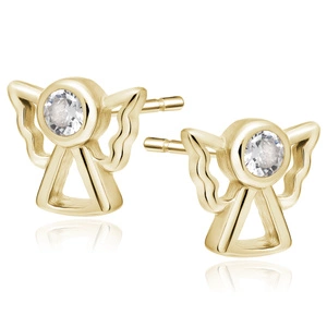 Srebrne pozłacane pr.925 kolczyki aniołki z białą cyrkonią