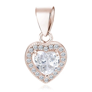 Srebrna zawieszka pr.925 serce z białą cyrkonią - różowe złoto