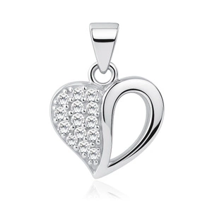 Srebrna zawieszka pr.925 serce z cyrkoniami na jednej połowie